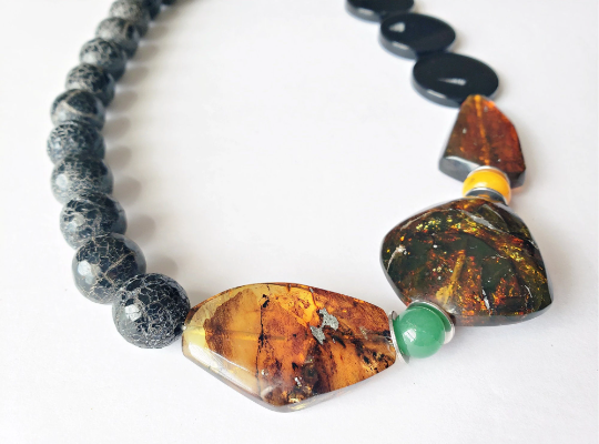 Mayan chunky unisex Mexican Amber and Jade necklace by Satori Jewels and Gems